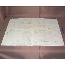 DESENHO (58,5X41 CM), COM CANETA HIDROCOR, COM A INSCRIÇÃO 'LULA CONTINUE ASSIM!!! / ALEGRIA / SAÚDE / RESPEITO / AMOR / PAZ / ASS: LARISSA, ENIR, LÚCIA, LAIS, VALMOR, TONHA, CÉLIA / CIDADE: CAPECÓ, SC / DIA: 04/10/03'. COM DESENHOS DE FLORES, ESTRELAS, CORAÇÕES, PALMEIRAS.