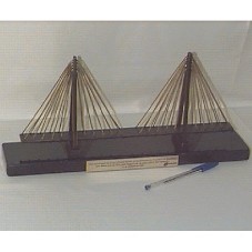 MAQUETE (35X6X16 CM) DA PONTE SOBRE O RIO PARANAÍBA, EM METAL. FIXADA EM BASE RETANGULAR (40X8X2 CM) EM GRANITO PRETO, TENDO NA PARTE FRONTAL, PLACA (15X2 CM) EM METAL DOURADO, COM A INSCRIÇÃO 'UMA HOMENAGEM DO GRUPO QUEIROZ GALVÃO AO EXCELENTÍSSIMO SR. PRESIDENTE DA REPUBLICA, LUIZ INÁCIO LULA DA SILVA, PELA INAUGURAÇÃO DA PONTE SOBRE O RIO PARANAÍBA. 11 DE OUTUBRO DE 2003 / QUEIROZ GALVÃO'. ACONDICIONADA EM CAIXA (45X13X20,5 CM) DE MADEIRA FORRADA COM TECIDO PRETO.