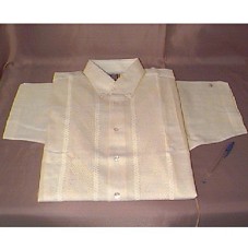 CAMISA SOCIAL (TAM 43) EM CAMBRAIA DE LINHO, NA COR CREME, COM BORDADO 'AO PO'I', ORIGINÁRIO DE UM POVOADO ESPANHOL, FEITO À MÃO. NA MANGA ESQUERDA, BORDADO NA COR ROXO, MARCA DA LOJA 'BRITISH SHOPPING SINCE 1989'. ACOMPANHA CARTÃO DE VISITA DO REMETENTE 'NICANOR DUARTE FRUTOS / PRESIDENTE DE LA REPUBLICA DEL PARAGUAY'.