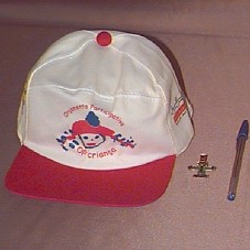 BONÉ EM TECIDO BRANCO, COM ABA VERMELHA. NA FRENTE, ESTAMPA COM SÍMBOLO DO PROGRAMA 'ORÇAMENTO PARTICIPATIVO / OP CRIANÇA', DESENHO DE UMA BONECA; NAS LATERAIS, 'ORÇAMENTO PARTICIPATIVO / O POVO DECIDE. A PREFEITURA FAZ.' E, 'PREFEITURA DE RECIFE / AÇÃO POR UMA VIDA MELHOR'. ACOMPANHA BROCHE COM DESENHO DE UM BONECO VESTIDO DE PALETÓ VERDE E CARTOLA, COM A INSCRIÇÃO 'OLINDA-PE'. ACONDICIONADO EM SACOLA DE TNT BRANCO, COM MESMO SÍMBOLO DO PROGRAMA.