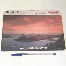 MOUSE-PAD (22X18 CM), COM FOTO DA CIDADE DE RECIFE E A INSCRIÇÃO 'RECIFE / PATRIMÔNIO HISTÓRICO E CULTURAL DA HUMANIDADE / PREFEITURA DO RECIFE / AÇÃO POR UMA VIDA MELHOR / WWW.RECIFE.PE.GOV.BR'.