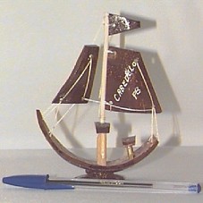 MINI JANGADA (9,5X4,5X13,5 CM) CONFECCIONADA COM CASCA DE CÔCO. NA VELA, A INSCRIÇÃO 'CABEDELO PB'.