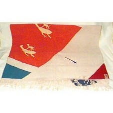MANTA (102X170CM) CONFECCIONADA COM BARBANTE DE ALGODÃO NOS TEARES DE PEDRO II, PIAUÍ. SOB FUNDO BRANCO SÃO RETRATADAS FORMAS GEOMÉTRICAS, EM TONS DE VERMELHO E AZUL, E DESENHOS RUPESTRES COMO OS ENCONTRADOS NAS CAVERNAS E PAREDES DA SERRA DA CAPIVARA, EM SÃO RAIMUNDO NONATO. ACOMPANHA FOLHETO PUBLICITÁRIO.