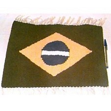 BANDEIRA DO BRASIL (33X42CM) CONFECCIONADA EM TEAR MANUAL, COM BARBANTE DE ALGODÃO, NA CIDADE DE PEDRO II, PIAUÍ. ACOMPANHA FOLHETO PUBLICITÁRIO.