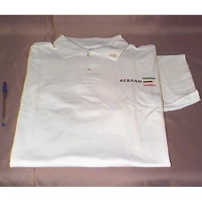 CAMISA PÓLO (TAM XG), NA COR BRANCA, DE MANGA CURTA, COM DOIS BOTÕES NA GOLA. NA PARTE SUPERIOR ESQUERDA, A INSCRIÇÃO 'AEBRAN' E LOGOTIPO. NA GOLA, BÓTON (2X0,7 CM) EM METAL , COM MESMA INSCRIÇÃO E LOGOTIPO.