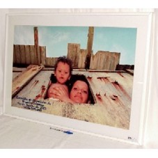 QUADRO (63X89CM) CONTENDO UMA FOTOGRAFIA QUE RETRATA UMA MULHER COM UMA CRIANÇA NA JANELA DE UM BARRACO DE MADEIRA. NO CANTO INFERIOR ESQUERDO ESTÁ ESCRITO 'CONSELHO DE MORADORES DE BRASÍLIA TEIMOSA / RECIFE, JANEIRO DE 2003 / GESTÃO 2001 A 2003'. MOLDURA EM MADEIRA BRANCA E PASSE-PARTOUT BRANCO. PROTEÇÃO DE VIDRO.
