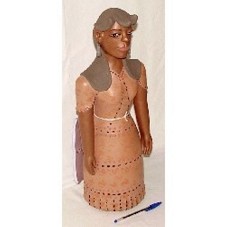 ESCULTURA (52X20X17CM) EM ARGILA RETRATANDO UMA MULHER MORENA DE BRINCOS E VESTIDO. ESTA CERÂMICA É UMA DENTRE AS PRODUZIDAS EM SANTANA DO ARAÇUAÍ, MUNICÍPIO DE PONTO DOS VOLANTES, NORTE DE MINAS GERAIS, DENTRO DE UMA TRADIÇÃO QUE TEVE INÍCIO COM A SRA. MESTRE ISABEL.