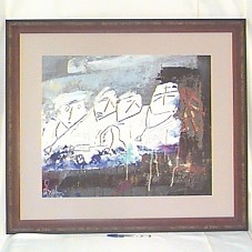 PINTURA (59,5X49,5 CM) REPRESENTANDO QUATRO MÉDICOS E UMA CRIANÇA AO FUNDO. PREDOMINA OS TONS DE BRANCO, AZUL, CINZA E PRETO. TEXTURIZADA COM GESSO. NO CANTO INFERIOR ESQUERDO, ASSINATURA DO ARTISTA (NÃO IDENTIFICADO). MOLDURA EM MADEIRA MARCHETADA (84,3X74,7 CM) E PASSE-PARTOUT EM PAPELÃO CINZA. ATRÁS, PAPEL COLADO COM A INSCRIÇÃO 'OFERTA DO HOSPITAL CENTRAL DO MAPUTO À SUA EXA PRESIDENTE DO BRAZIL SR. LUÍS INÁCIO LULA DA SILVA. 06/11/2003'.