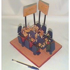 ESCULTURA (22X14X19 CM), EM MADEIRA, REPRESENTAÇÃO DE UMA MESA DE REUNIÃO COM OITO INTEGRANTES, E DUAS PLACAS, UMA COM AGENDA DA REUNIÃO, E OUTRA, COM METAS A SEREM CUMPRIDAS. FIXADA EM BASE DE MADEIRA (18,5X23X1,5 CM), PINTADA DE LARANJA, COM BORDAS VERMELHAS. EM UMA DAS BORDAS, A INSCRIÇÃO 'CRIMILDO'. PREDOMINA OS TONS DE AZUL, VERMELHO, VERDE E AMARELO. OBS.: A PEÇA CHEGOU ACONDICIONADA EM CAIXA DE PAPELÃO, APRESENTANDO ESTADO DE MOFO.