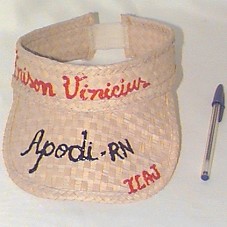 VISEIRA EM PALHA. NA FRENTE, EM VERMELHO E AZUL, 'ERISON VINICIUS / APODI-RN / ICAJ'.