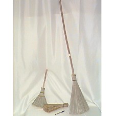 VASSOURA (134 CM) DE PALHA, COM CABO EM MADEIRA. ACOMPANHA UMA MINI VASSOURA (47 CM), E UM CHUMAÇO DE PALHA (30 CM), TIPO ESPANADOR. NO CABO DAS VASSOURAS, A INSCRIÇÃO 'JARDIM - CEARÁ'. ACABAMENTO DAS PEÇAS COM ARAME.