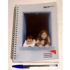 AGENDA (22,5X16CM) TRILÍNGÜE (ESPANHOL, PORTUGUÊS E FRANCÊS) 'VISÃO MUNDIAL', TRAZENDO NA CAPA A FOTOGRAFIA DE DUAS CRIANÇAS NUMA JANELA E A INSCRIÇÃO 'AGENDA 2003 / VISIÓN MUNDIAL / VISÃO MUNDIAL / VISION MONDIALE'.