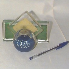 TROFÉU EM VIDRO (13X10X9,5 CM), ALUSÃO À BANDEIRA BRASILEIRA. COMPOSTO POR TRÊS PARTES: EM AZUL, O CÍRCULO DA BANDEIRA, COM A INSCRIÇÃO 'BNT MERCOSUL'; EM AMARELO, O LOSANGO; E, EM VERDE, O RETÂNGULO, TENDO NA PARTE INFERIOR DIREITA DA FRENTE, 'EXMO. SR. LUIZ INÁCIO LULA DA SILVA PRESIDENTE DA REPÚBLICA'. ATRÁS, 'UMA HOMENAGEM DA 9ª EDIÇÃO DA BNT - MERCOSUL / SANTA CATARINA - BRASIL / WWW.BNTMERCOSUL.COM.BR'. CADA UMA FIXADA À OUTRA, NA RESPECTIVA ORDEM.