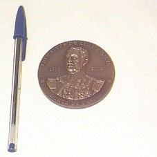 MEDALHA (7 CM) EM BRONZE. NA FRENTE, EM ALTO RELEVO, BUSTO DE DUQUE DE CAXIAS, E A INSCRIÇÃO 'LUIZ ALVES DE LIMA E SILVA / 1803 / 2003 / DUQUE DE CAXIAS'. ATRÁS, UMA COROA E 'PATRONO DO EXÉRCITO BRASILEIRO / O PACIFICADOR', E DENTRO DE UMA FAIXA, 'LUIZ INÁCIO LULA DA SILVA / PRESIDENTE DA REPÚBLICA'. NA LATERAL, '101 / GRAVARTE LISBOA PORTUGAL'. ACONDICIONADA EM ESTOJO VERDE (11X11X2,5 CM).