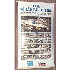 BANNER (79,5X139 CM) COM FOTO DE PARTE DA CIDADE DE SÃO PAULO, MOSTRANDO UMA DAS UNIDADE DO CENTRO EDUCACIONAL UNIFICADO, 'CEU JAMBEIRO'. POSSUI A INSCRIÇÃO, 'CEU. SÓ SÃO PAULO TEM / NUNCA UMA PREFEITURA FEZ TANTO PELA EDUCAÇÃO. ATÉ JANEIRO DE 2004, SERÃO INAUGURADOS 21 CEUs. SÃO 50 MIL NOVAS VAGAS NO ENSINO PÚBLICO DE SÃO PAULO.'. NA PARTE INFERIOR, VINTE FOTOS PEQUENAS DE OUTRAS UNIDADES.