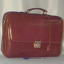 MALETA EM COURO MARROM (43X13X28 CM), COM ALÇA CURTA E LONGA. POSSUI QUATRO REPARTIMENTOS, SENDO UM PARA NOTEBOOK. CADA REPARTIMENTO POSSUI SUBDIVISÕES. NA PARTE INTERNA DO BOLSO FRONTAL, 'BM&F / BRASIL /BOLSA DE MERCADORIAS & FUTUROS'. ACOMPANHA INFORMATIVO SOBRE A PEÇA, SOBRE MANUTENÇÃO E GARANTIA, E CHAVE DA MALETA.