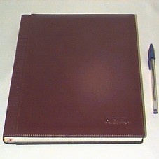 AGENDA (21,5X26,5X2 CM) DO ANO DE 2004, COM CAPA EM COURO MARROM. NO CANTO INFERIOR DIREITO, 'BSGI ASSOCIAÇÃO BRASIL SGI'.