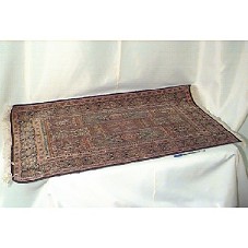 TAPETE (57X98 CM) INDIANO, COM FRANJAS NAS EXTREMIDADES. PREDOMINA OS TONS DE MARROM E VERDE. ACOMPANHA CARTÃO DO REMETENTE, 'WITH BEST COMPLIMENTS FROM: ARUN JAITLEY / MINISTER OF LAW AND JUSTICE AND COMMERCE AND INDUSTRY'.