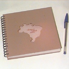 AGENDA 2004 (16X15,5 CM) EM PAPEL RECICLADO E CAPA EM CARTÃO COURO. NA CAPA, RECORTE EM FORMA DO MAPA DO BRASIL. ACOMPANHA DOIS CARTÕES DE VISITA DO REMETENTE, UM COM ASSINATURA E NO OUTRO, 'PARA O PRESIDENTE LULA, MUITO NOS ORGULHA TER UM PRESIDENTE QUE TEM COMO SUA PRIORIDADE A LUTA POR UM BRASIL SEM FOME. QUE ESTA AGENDA POSSA CONTRIBUIR COMO FONTE DE INSPIRAÇÃO DIÁRIA PARA AS AÇÕES DO PRESIDENTE EM 2004 / MUITA PAZ E SAÚDE / ANDRÉ SPITZ'; E, FOLDER COM INFORMAÇÕES SOBRE A INSTITUIÇÃO.