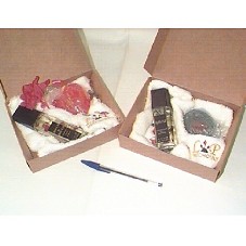 DUAS CAIXAS DE PAPELÃO CONTENDO CADA UMA: UM PERFUME ('MINOSSE' E 'ROCCO & ROCCO'), UM SABONETE GLICERINADO E UMA TOALHA DE VISITA. NA TAMPA DA EMBALAGEM, EM DOURADO, 'PR PATCHOULY / LES PARFUMS'; BORDADO EM CADA TOALHA, 'LP PATCHOULY'.