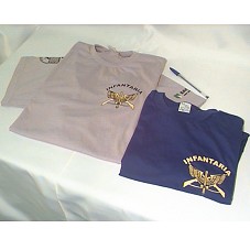 DUAS CAMISETAS EM MALHA, DE MANGA CURTA: UMA CINZA (TAM GG), COM ESTAMPA EM AMARELO NA PARTE FRONTAL SUPERIOR ESQUERDA, COM O SÍMBOLO DA INFANTARIA PLANALTO, E NAS MANGAS, O BRASÃO E 'BANCO REAL ABN AMRO'; A OUTRA (TAM M), AZUL, COM MESMAS ESTAMPAS.