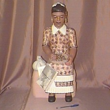 ESCULTURA (66,5X31X29 CM), CONFECCIONADA EM BARRO DO RIO JEQUINTINHONHA, DE UMA MULHER SENTADA COM UMA PENEIRA NO COLO, ESCOLHENDO FEIJÃO.