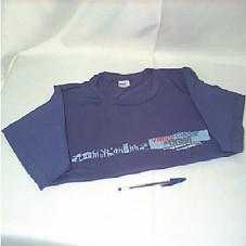 CAMISETA EM MALHA DE ALGODÃO AZUL, TAM. P. NA FRENTE, EMBLEMA DA CONFERÊNCIA NACIONAL DO MEIO AMBIENTE - CONFERÊNCIA INFANTO-JUVENIL, EM AZUL CLARO E A INSCRIÇÃO 'VAMOS CUIDAR DO BRASIL', EM VERMELHO, AZUL E VERDE. NAS COSTAS, EM BRANCO 'BRASÍLIA - 2003'; APOIO: ELETROBRAS, FUTURA, PETROBRAS E UNESCO; REALIZAÇÃO: MINISTÉRIOS DA EDUCAÇÃO E DO MEIO AMBIENTE E GOVERNO FEDERAL.
