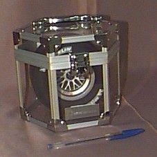 MINIATURA DE PNEU, DA MARCA MICHELIN, ACONDICIONADA EM ESTOJO DE ACRÍLICO E ALUMÍNIO, COM ALÇA, NA FORMA HEXAGONAL (15X18 CM).
