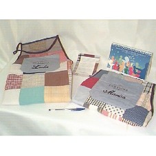 DOIS AVENTAIS EM PATCHWORK. NA FRENTE DE CADA UM, UM BOLSO BORDADO COM: 'DUDALINA AMOR À CAMISA / LULA' E 'DUDALINA AMOR À CAMISA / MARISA', RESPECTIVAMENTE. ACOMPANHA DOIS CARTÕES COM DESCRIÇÃO DO TRABALHO E DOIS CALENDÁRIOS DE MESA DO ANO DE 2004.