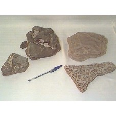 QUATRO PEDAÇOS DE FÓSSEIS, SENDO DOIS DE 'CRUTÁCIOS DO MAR' E DOIS DE 'PITERODACTILO'. ACONDICIONADOS EM SACO PLÁSTICO.
