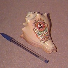 CONCHA DO MAR (8X13,5 CM) COM PINTURA NA PARTE SUPERIOR FRONTAL. FIGURA LEMBRA UM XAMÃ.