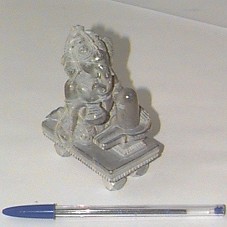 ESCULTURA EM PEDRA JADE (10 CM). FIGURA DO DEUS HINDU GANESHA, SENTADO DE JOELHOS, SEGURANDO UM VASO.