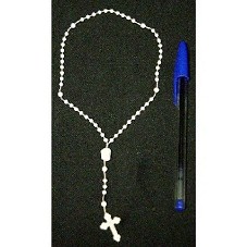 TERÇO BRANCO CONFECCIONADO EM RESINA E CORDÃO. ACOMPANHA ORAÇÃO DE NOSSA SENHORA DAS GRAÇAS.