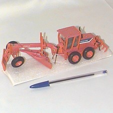 MINIATURA DO TRATOR (20X6 CM) FG 200 DA FIATALLIS. PINTADO NA COR LARANJA. FIXADO, POR ARAME, EM BASE (21X6 CM) METÁLICA REVESTIDA DE ISOPOR.
