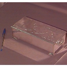 PORTA-JÓIAS (21X10X6,5 CM) EM PRATA 925, POSSUINDO DUAS ALÇAS LATERAIS. NA TAMPA, DESENHO DO MAPA DA ÁRABIA SAUDITA, DA FACHADA DA 'PETROMIN UNIVERSITY - DHAHRAN' E DA 'RUINED FOTR-NAJD'. POSSUI AINDA ALGUMAS INSCRIÇÕES EM ÁRABE. TEM SEU INTERIOR EM MADEIRA. ACONDICIONADO EM CAIXA VERDE (29,5X17X14 CM) COM DETALHES EM DOURADO. NA TAMPA, DESENHO DE UMA PALMEIRA E DUAS ESPADAS.