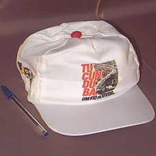 BONÉ EM BRIM BRANCO. NA FRENTE, EM VERMELHO E PRETO, 'TUCUNDUBA UM RIO REVIVIDO.' E ESTAMPA DE UMA FOTO. NAS LATERAIS, SÍMBOLO DO GOVERNO FEDERAL E 'BELÉM PREFEITURA DA CIDADE / CUIDAR PARTICIPAR MUDAR'.