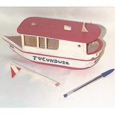 MINIATURA DO BARCO TUCUNDUBA BM (25X8,5X9,5 CM) EM MADEIRA, PINTADA DE BRANCO E VERMELHO. POSSUI A INSCRIÇÃO 'TUCUNDUBA BM / BELÉM PARÁ'.