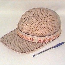 BONÉ EM PALHA. POSSUI FAIXA EM MESMO MATERIAL COM BORDADO EM VERMELHO 'LEMBRANÇA DO TUCUNDUBA BELÉM - PARÁ'.