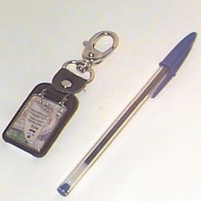 CHAVEIRO (10,7 CM) EM COURO E METAL PRATEADO. NA FRENTE, 'TUCUNDUBA' E ESTAMPA COM FOTO DO RIO.