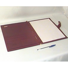 PASTA (25X32,5 CM) EM COURO, NA COR VINHO. NA PARTE INTERNA, BLOCO DE ANOTAÇÕES; ESPAÇO PARA COLOCAR CANETA; BOLSO COM ZÍPER E QUATRO BOLSOS ABERTOS. INTERNA E EXTERNAMENTE, POSSUI A INSCRIÇÃO 'CASA LOPEZ'.