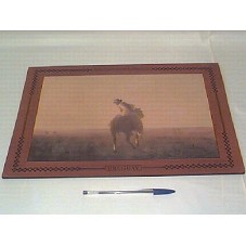 GRAVURA (34X24 CM) EM COURO. FIGURA DE UM HOMEM MONTADO À CAVALO, OLHANDO PARA TRÁS, EM UM CAMPO. PREDOMINA TONS DE MARROM. MOLDURA (41,2X30,7 CM) EM MESMO MATERIAL. NA PARTE DA FRENTE, A INSCRIÇÃO 'JUNTA DEPARTAMENTAL DE MONTEVIDEO / URUGUAY'; ATRÁS, 'JUAN M. BLANES / ENTRE DOS LUCES'. ACONDICIONADA EM PASTA DE PAPELÃO MICROONDULADO, TENDO NA FRENTE, UM BRASÃO COM A INSCRIÇÃO 'CON LIBERTAD NI OFENDO NI TEMO' E 'JUNTA DEPARTAMENTAL DE MONTEVIDEO'.