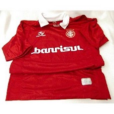 CAMISETA VERMELHA, DA MARCA TOPPER, COM GOLA BRANCA, DO TIME DE FUTEBOL SPORT CLUB INTERNACIONAL. NA FRENTE, EMBLEMA DO TIME, DA TOPPER E DO BANRISUL. NAS COSTAS, PINTADO EM BRANCO O NÚMERO 13 E AS PALAVRAS 'BANRISUL' E 'LULA'.