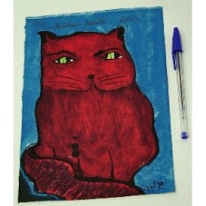 LITOGRAFIA Nº 13/100 (25X17CM), RETRATANDO UM GATO VERMELHO SOBRE FUNDO AZUL, CRIADA ESPECIALMENTE PARA A COMEMORAÇÃO DOS VINTE ANOS DO MUSEU BARÃO DE MAUÁ.