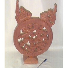 ESCULTURA EM MADEIRA (43 CM). FORMATO DE CÍRCULO COM FIGURAS HUMANAS MASCULINAS SOBREPOSTAS NO LADO INTERNO, FORMANDO UMA RODA. NA PARTE SUPERIOR EXTERNA, UM HOMEM TOCANDO VIOLA E OUTRO TOCANDO HARPA. NA BASE DO CÍRCULO, 'MARIO TELES'. FIXADA EM BASE (11X10,5X4 CM) COM PARTE SUPERIOR EM TRAPÉZIO.