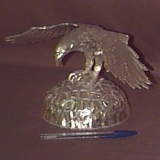ESCULTURA (30X20X15 CM) EM PRATA 925. FIGURA DE UM ÁGUIA COM AS ASAS ABERTAS, EM CIMA DE UMA PEDRA. ACOMPANHA CARTÃO COM NOME DO REMETENTE, 'CARLOS SLIM HELÚ'.