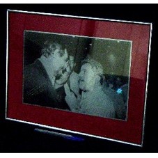 QUADRO COM FOTOGRAFIA, GRAVADA EM METAL, DE LUIZ INÁCIO LULA DA SILVA AO PARTICIPAR DO I FÓRUM SOCIAL MUNDIAL, EM JANEIRO DE 2001. MOLDURA EM METAL PRATEADO.