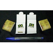 QUATRO BÓTONS EM METAL DOURADO, RETRATANDO A BANDEIRA NACIONAL COM UMA PLACA GRAVADA 'BRASIL'. ACONDICIONADOS EM EMBALAGENS DE PAPEL DA 'PIN STAR - COLEÇÃO 2002'.
