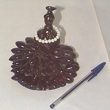 ARTESANATO (11,5 CM) CONFECCIONADO EM CONCHAS MARINHAS, ISOPOR E MASSA DE MODELAGEM. FIGURA ESTILIZADA DE UMA BAIANA SEGURANDO UM PRATO, E VESTINDO UM COLAR DE MIÇANGAS BRANCAS.