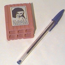 MINIATURA DE TIJOLO CERÂMICO (5X6X3,2 CM). NA FRENTE, PLACA METÁLICA (3X4,5 CM) COM IMAGEM DA IRMÃ DULCE E 'EU AJUDEI NA CONSTRUÇÃO DA IGREJA DA IMACULADA CONCEIÇÃO'. ACONDICIONADO EM SACO PLÁSTICO, AMARRADO COM FITA 'LEMBRANÇA DE IRMÃ DULCE - ANJO BOM DA BAHIA'. ESTE, ACONDICIONADO EM CAIXA DE PAPELÃO (11,5X7,5X3,5 CM). NO FUNDA DA TAMPA, 'LEMBRANÇA DA CONSTRUÇÃO DO SANTUÁRIO DA IMACULADA CONCEIÇÃO DA MÃE DE DEUS'.
