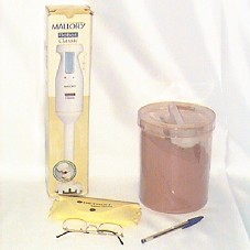 MIXER MARCA MALLORY (35,5 CM), MODELO ROBOT CLASSIC, COR BRANCO, 120V. ACONDICIONADO EM EMBALAGEM PRÓPRIA. ACOMPANHA MANUAL DE INSTRUÇÃO E REDE AUTORIZADA. ÓCULOS DE GRAU PARA RETOCAR MAQUIAGEM. ACOMPANHA CARTÃO DA 'ÓTICA SANTA LUZIA', TENDO ATRÁS A INSCRIÇÃO ' OCULOS PARA RETOCAR MAQUIAGEM. CRIAÇÃO E FABRICAÇÃO / ROMEU ROSSI'. ACONDICIONADO EM ESTOJO DE EVA AMARELO. NA FRENTE 'DETROIT EYEWEAR COLLECTION'. POTE DE MISTURA ARTESANAL DE GUARANÁ EM PÓ.